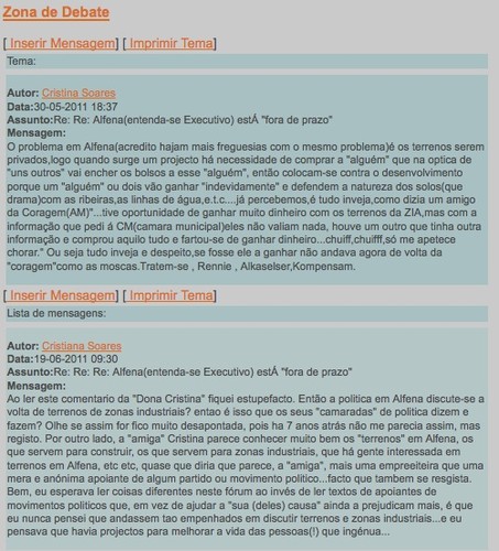 Um, assinado por uma eventual - e já vão perceber o porquê do termo "eventual" Cristina Soares - e um outro assinado por uma - novamente eventual - Cristiana Soares, que começa por se manifestar estupefacto (sic) com o comentário da "Dona Cristina" e depois, prossegue num arrazoado um pouco confuso, mas já no feminino, em que dá a ideia de discordar relativamente ao conteúdo do seu comentário.