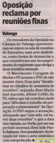 Tem no entanto ainda muita estrada para percorrer e pode ser que até lá, acabe por "descobrir" as razões de tanto descontentamento por parte da oposição e de muitos valonguenses - a maioria, porque convém não esquecer que a oposição é "maioritária" na Câmara!
