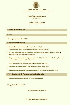 Conforme podemos constatar mais uma vez, a Ordem de Trabalhos é "bem extensa", isto apesar de nos intervalos entre este tipo de reuniões, como nos foi explicado numa das últimas vezes, o trabalho também não parar.