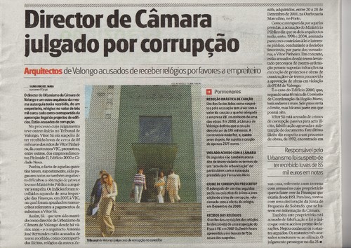 Esta introdução vem a propósito da notícia do JN de hoje e que talvez só surpreenda as gentes de Valongo, pelo único facto de os visados terem chegado à barra do Tribunal - eventualmente porque agora existe um maior cuidado com o transporte dos processos e este não "conseguiu" extraviar-se de forma muito conveniente...