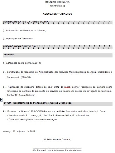 Por isso e bem próxima ainda da 1ª reunião ordinária, cá temos mais uma - quinta feira dia 12 de Janeiro, pelas 10,00 horas: