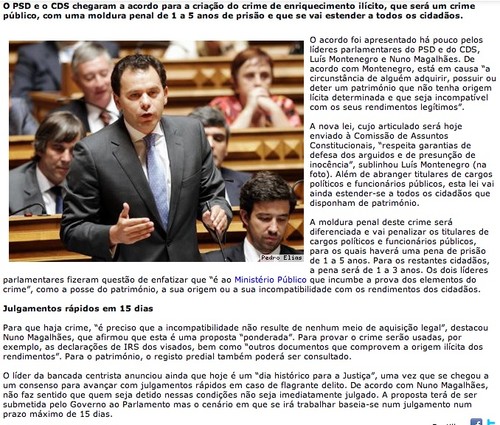 Referia-se ao acordo finalmente conseguido entre o PSD e o CDS-PP relativamente ao enriquecimento ilícito e ao aumento da moldura penal, quando estão envolvidos políticos...