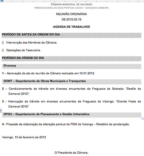 Dia 16 de Fevereiro, às 10 horas da manhã e no salão nobre que já foi Nobre, terá lugar mais uma reunião de Câmara - ver Edital abaixo.