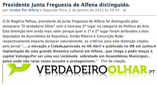 Desta vez e apenas no que a Alfena e a Rogério Palhau diz respeito, o Verdadeiro Olhar esteve mal. E julgo que isso só aconteceu, por ter posto um menor cuidado na investigação do perfil do premiado.
