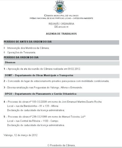 Como se pode depreeender dos assuntos constaantes da Ordem do Dia, Valongo (já) não tem problemas e por issso os assuntos para levar a reunião de Câmara começam a escassear, ou então - e essa é a hipótese mais provável - esta resolveu fechar o estaminé para obras...