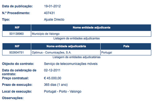 Claro que o recorte que coloco a seguir, não me permite saber quantos telemóveis de serviço estão distribuídos, o que desde logo me deixa um pouco "as escuras" para retirar uma conclusão mais rigorosa.