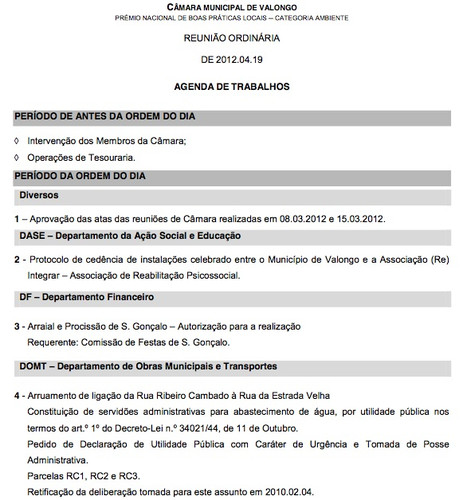 PS: Um amigo do facebook, atento à habitual falta de rigor de quem redige, ou faz as minutas para estas ordens de trabalhos e depois as assina, deixou-me este comentário que diz algo sobre a apregoada excelência autárquica:
