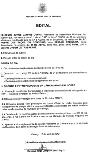 Dando cumprimento às determinações legais, reúne na próxima sexta feira dia 27 pelas 21,00 horas no Salão Nobre da Câmara, a Assembleia Municipal do nosso Concelho.