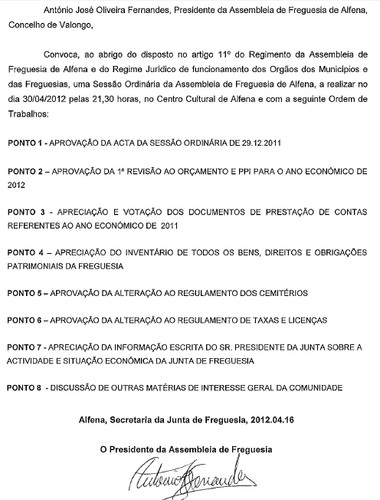 SERVIÇO PÚBLICO - ASSEMBLEIA DE FREGUESIA DE ALFENA