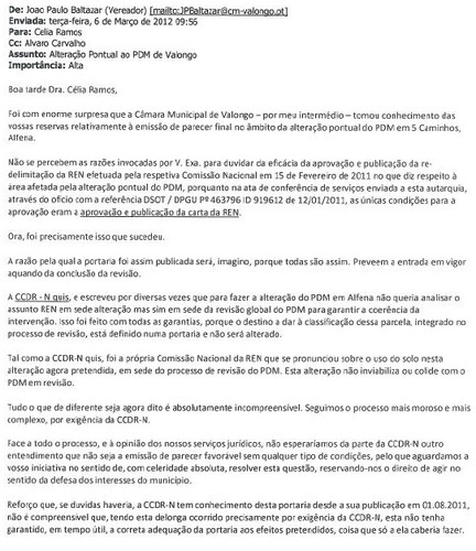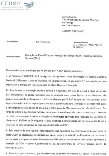 Antes de sair, a Drª Célia Ramos ainda tentou fazer uma 'gentileza' aos reclamantes, propondo à tutela a alteração do ponto 3 da portaria 260/2011 de 1 de Agosto, que publica a nova Carta REN de Valongo - a tal 'cláusula travão' a que já nos referimos.