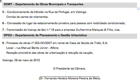 Desta vez à sexta feira - dia 11 de Maio - reunião pública semanal da Câmara de Valongo.