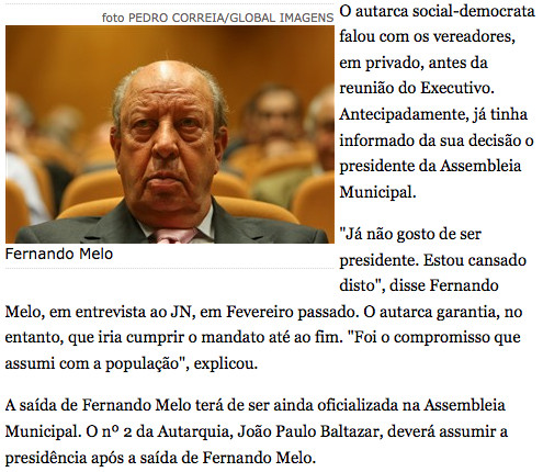 Vencido pelo cansaço de não fazer nada, ou pior, de fazer tudo errado, ameaçado pela oposição com processos por gestão danosa, detentor de um palmarés invejável de gafes e situações embaraçosas para os valonguenses, mas (ainda) com um ego do tamanho do mundo, foi difícil convencê-lo a partir para o remanso do lar. Valongo ficará seguramente a ganhar com a sua partida, mas mais importante que isso é saber se ganhará com quem lhe sucede.