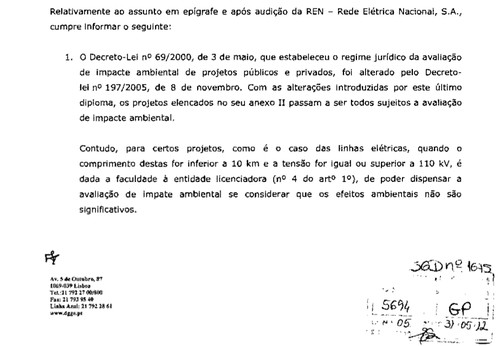 Começa a tornar-se um hábito dos governantes - e pelos vistos, também da Direcção Geral de Energia - partirem do princípio de que àqueles que reclamam lhes bastam estas 'não respostas', talvez por pensarem que todos os cidadãos estão 'sintonizados' com a sua fé inabalável na primazia do poder económico e que tudo que o possa pôr em causa, deve ser desvalorizado - ou 'respondido' desta forma.