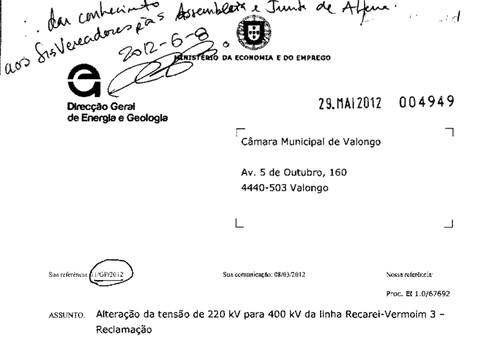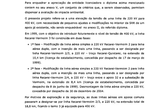 Já aqui escrevi sobre este assunto, há tempos atrás - o aumento da potência de 220 para 400 kVA nas linhas REN Recarei-Vermoim 2/3 - e sobre as reclamações entretanto apresentadas pela Junta de Freguesia de Alfena e pela Câmara de Valongo.