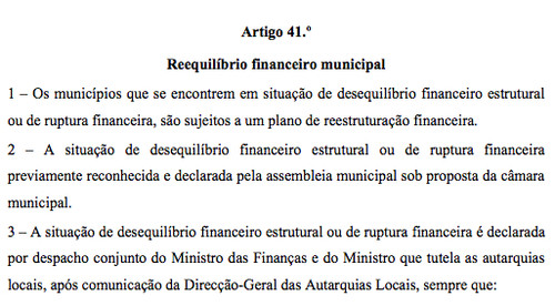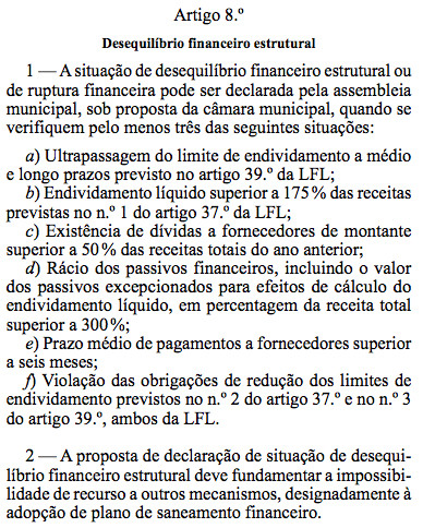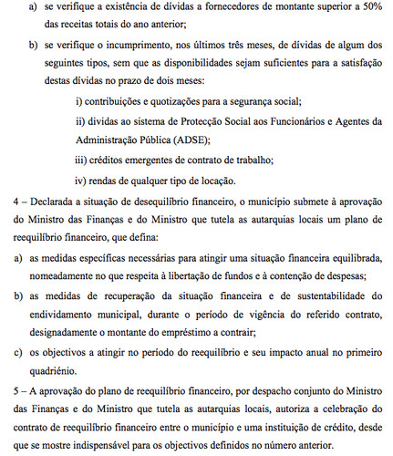 A classificação - e as consequências do tipo de desequilíbrio - encontram-se claramente regulamentadas, quer pela Lei 2/2007 de 15 de Janeiro, quer pelo DL 38/2008 de 7 de Março , cujos recortes que abordam especificamente a situação que (julgávamos nós) se aplica a Valongo publico a seguir e seria bom que, para tranquilidade de todos, o novo Presidente assumisse publicamente e de uma vez por todas, o que é que se alterou desde a sessão da Assembleia Municipal que aprovou o Plano de Saneamento Financeiro, para que venha agora a falar do 'Tipo II'!