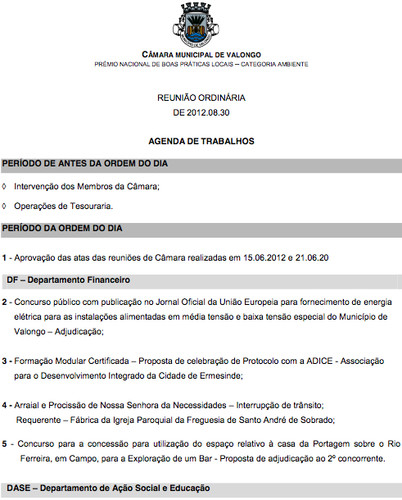 VALONGO/REUNIÃO DE CÂMARA - SERVIÇO PÚBLICO