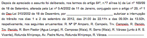 Mas onde eu queria chegar, era ao recorte do processo de licenciamento da Câmara hoje aprovado, que coloco a seguir e que não fora o alerta, mais uma vez de Pedro Panzina, que certamente levará à alteração do texto por parte da Câmara, Alfena passaria seguramente a integrar o 'Guinness Book' com um Rali automóvel 'mais excêntrico do mundo, quiçá do próprio País', por incluir troços de percurso 'aéreos'!