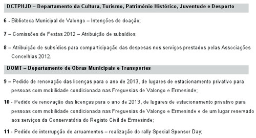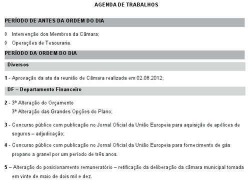 E no dia certo - quinta feira - às 10 horas no salão nobre, reunião da Câmara de Valongo, com um extensa - mas não densa - Ordem de Trabalhos: