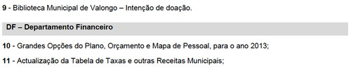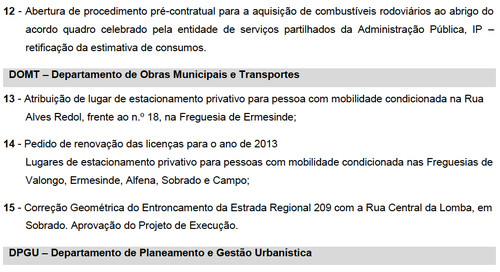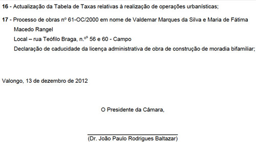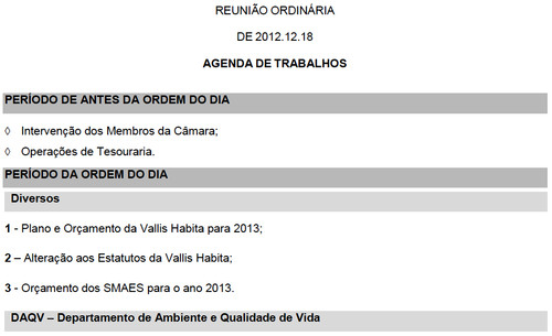 Bem em cima da hora, mas aida a tempo de entrar na nossa agenda, aqui vai a Ordem de Trabalhos para a reunião ordinária de Câmara de amanhã, 18 de Dezembro - à hora habitual: 10horas: