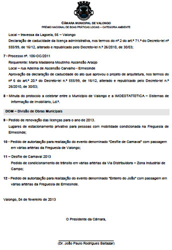 OBS.: Talvez a Câmara deva repensar o formato dos documentos que publica. Eu para os conseguir colocar neste blog tenho de fazer recortes e passá-lo para JPEG, o que os torna quase ilegíveis. Peço desculpa pelo incómodo...