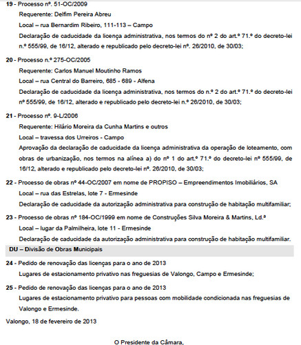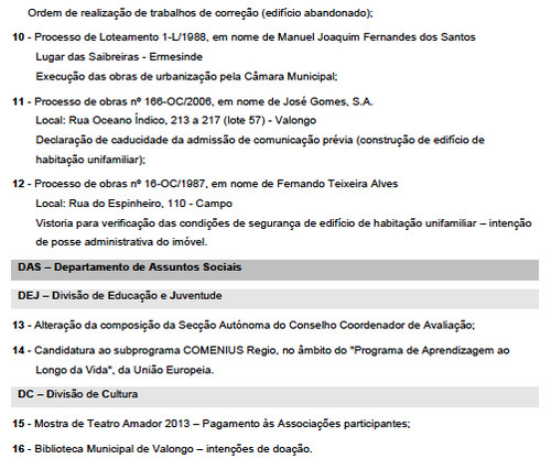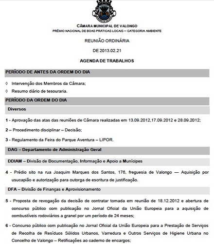 Quinta feira, 'no sítio do costume à hora do costume' e com uma Ordem de Trabalhos igualmente densa como também é habitual - é? - tem lugar a reunião pública de Câmara. A Agenda consta do recorte que publico abaixo: