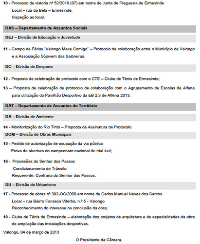 Próximo dia 7 de Março, 10 horas, reunião de Câmara, desta vez com alguns pontos de interesse e com dois seguramente polémicos Ponto 6 (Regulamento Municipal de Publicidade, Propaganda Política e Eleitoral e Ocupação do Espaço Público).