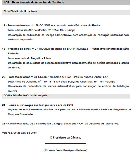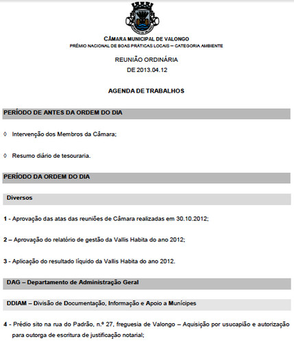 - Estabelece o mesmo entre outras (poucas) coisas, que as reuniões públicas de Câmara, são semanais - a última ocorreu no dia 21 de Março!