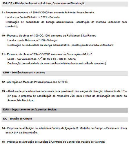Quanto a Ordem de Trabalhos, não a partilho, porque também aqui nos fazem ir a uma reunião onde nem seque sabemos o que vai ser discutido...