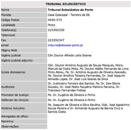 Confesso ainda a minha ignorância acerca das atribuições de um Tribunal eclesiástico - por exemplo, se deve integrar apenas pessoas íntegras - e por maioria de razão, declaro também desconhecer o papel desempenhado por todas aquelas altas individualidades que integram o do Porto, nomeadamente os auditores.