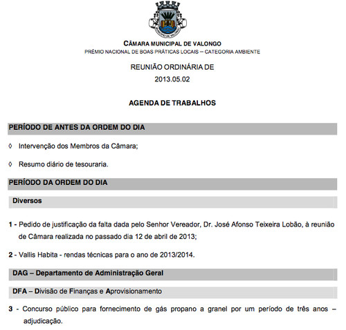Quinta feira dia 2 de Maio, reunião pública de Câmara, com uma agenda bem recheada de (aparentemente) coisa nenhuma.