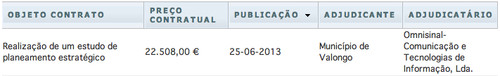 Só como curiosidade final, partilho a seguir, um curioso AJUSTE DIRECTO celebrado em Abril (mas publicado na BASE apenas em 25 de Junho) pelo herdeiro com... com quem, com quem, alguém quer arriscar um nome?