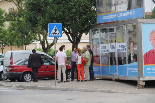 Alfena teve o privilégio(?) de registar no início da manhã de hoje, uma profícua reunião de trabalho(?) envolvendo o presidente da Câmara, o seu adjunto e elementos do seu staff, o vereador da Câmara da Maia e candidato por Valongo, Dr. Nogueira dos Santos (não sabemos se de férias ou com o mandato suspenso) bem como alguns elementos da candidatura de Guilherme Roque por Alfena - no contentor/sede do PSD, junto ao café Plaza.
