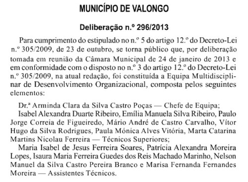 Publicação em DR da constituição da equipa multidisciplinar chefiada pela Dra. Arminda Clara, prima do presidente (recorte seguinte):
