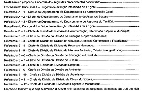 A Câmara não tem chefias a mais - ou precisa de todas as que estão previstas no procedimento concursal para chefias, a decorrer (recortes a seguir):