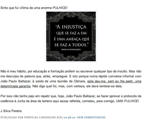 Escrever sobre pulhices tem sido nos últimos tempos a minha ocupação quase a tempo inteiro. Hoje porém, resolvi fazer como o outro que 'compra tudo feito'. Vai daí, do copy paste do trabalho de um amigo que como eu também convive - infelizmente - com as pulhices em que tropeçamos a cada canto aqui por Alfena e neste caso também em Valongo, a este post com pulhas dentro foi um passo...