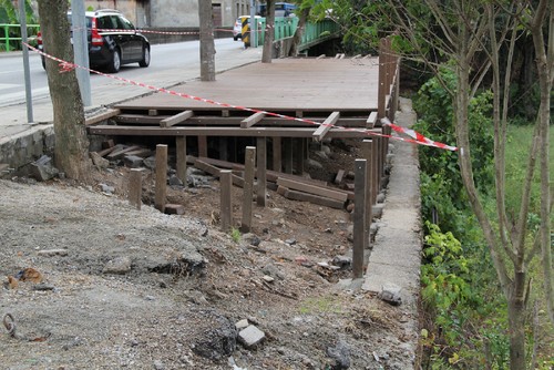 Quem quiser confirmar in loco o que a objectiva da minha câmara captou, faça favor. Mas se entretanto tiver crianças com quem costume ir passear ali para os lados da ponte, por favor não as largue da mão, pois o perigo de se passarem para a "esplanada que leva a lado nenhum" é mesmo real, sendo que o "lado nenhum" é um precipício com alguns metros e varandim não existe.
