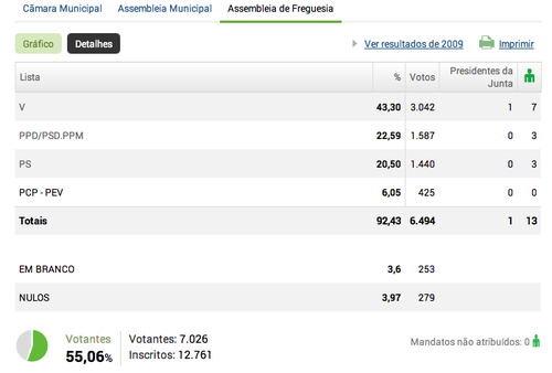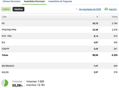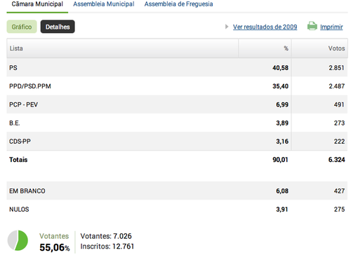 De facto, segundo os resultados vertidos no Portal da CNE, em Alfena votaram para a Junta e para a Câmara, 7026 eleitores e para a Assembleia Municipal, 7029 (3 votos a mais, portanto).