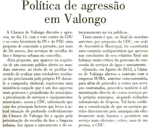 O problema do PCP e da CDU, é terem parado no tempo relativamente a muitos aspectos da realidade do País - e de Valongo neste caso.
