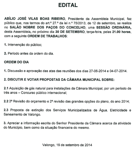 E amanhã, reúne em Assembleia ordinária, o Órgão Deliberativo de Valongo.