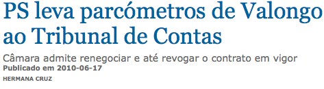 A Câmara de Valongo admite que a concessão de parcómetros cria uma situação "insustentável" e tem aspectos cuja "legalidade não está suficientemente esclarecida". Por isso, quer renegociar ou revogar a concessão. O PS vai expor o caso ao Tribunal de Contas.