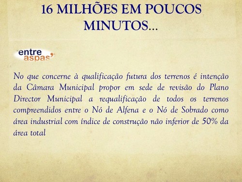 A saída para o problema da vigarice da NOVIMOVEST/SANTANDER, nunca pode ser a que se encontra prevista na proposta de PDM cuja discussão pública termina (?) já no próximo dia 17 e que é defendida pelo presidente de Câmara!