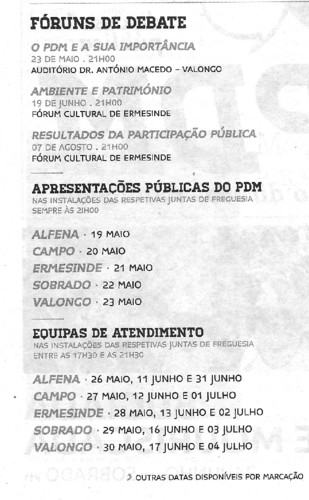 A seguir, um recorte do último Boletim Municipal, com as acções programadas para o já referido período de Consulta Pública: