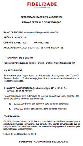 Como exemplo (negativo) da forma leviana como estas coisas acontecem, veja-se o seguro de responsabilidade civil apresentado pelo organizador da prova integrada no Campeonato de Trial e que decorrerá em Valongo - ver AQUI - no próximo dia 18 de Maio, apoiada pela Câmara!